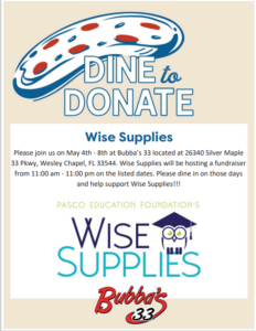 During Teacher Appreciation Week (May 4 – May 8), visit Bubba’s 33 in Wesley Chapel to show your support for teachers. A portion of the proceeds from your bill will be donated to the Pasco Education Foundation’s Wise Supplies Center, the free teacher resource store for Pasco County Teachers.