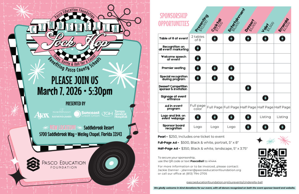 The Cinderella Ball is an annual black-tie optional fundraising dinner and auction for the Foundation. Proceeds from this event benefit the many programs of the Pasco Education Foundation, such as scholarships, creative teaching grants, and recognition events for students and district employees. You can view previous Cinderella Ball photos and sponsors here.